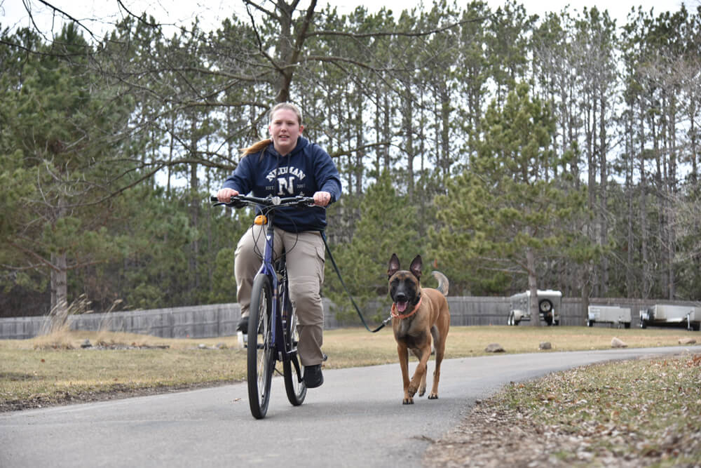 The goal of our Couch to 5K program is for you to be able to include your dog in specific activities that you can enjoy together, while also helping to meet your dog’s fitness needs. This includes having your dog learn to heel while going for a jog with you, and/or learning to jog next to a bike. These activities are great ways to take your dog with you while going jogging or biking, as well as keeping them active to meet their exercise needs. This is a fast-paced physical conditioning program and can teach the dog to run for a 5K, so if you are looking to have your dog build up their endurance, get fit and they enjoy running and fast paced activities, this is the adventure program for you.