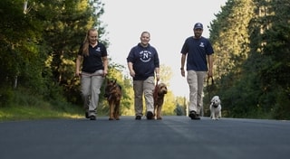 Dogs enrolled for the 12-week course will go into public places the final month of training for distraction proofing, public-etiquette, and conditioning to environmental stimulus. This includes stopping and sitting automatically at a crosswalk, holding stationary positions when people or cars pass, and responding to commands in an urban environment.
